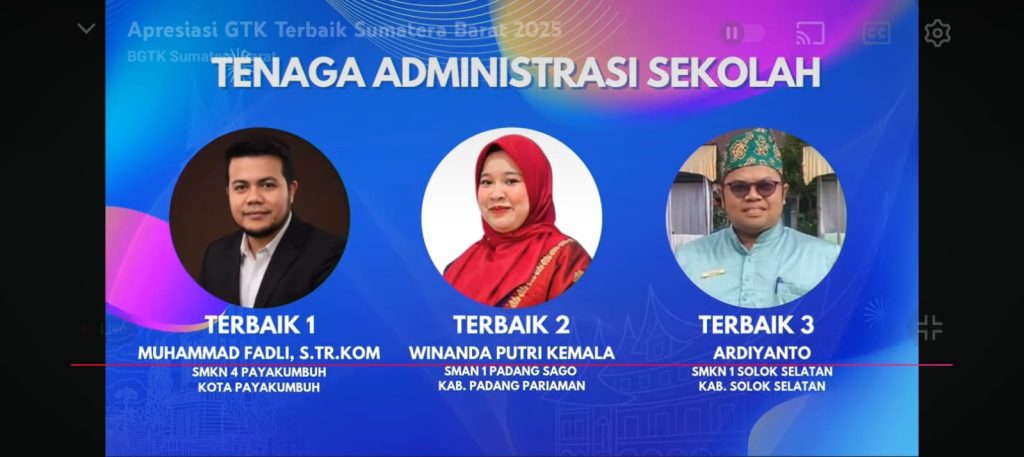 SMKN 4 Payakumbuh kembali meraih prestasi pada puncak dalam Apresiasi GTK Sumbar 2025. Pertama oleh Muhammad Fadli, S.Tr.Kom. (Tenaga Administrasi Sekolah) tampil sebagai Juara I Kategori Tenaga Administrasi Sekolah Transformatif. Kedua oleh Ilham Ilahi, M.Pd.T (guru produktif bidang TKJ) berhasil meraih Juara II Kategori Guru SMK Transformatif. Prestasi ini menegaskan budaya inovasi di SMKN 4 Payakumbuh dan menjadi inspirasi bagi guru serta tenaga kependidikan lainnya. “Dua penghargaan di ajang provinsi ini sungguh membanggakan. Keduanya membuktikan bahwa inovasi yang lahir dari sekolah dapat bersaing dan diakui di tingkat tinggi,” ujar Kepala SMKN 4 Payakumbuh, Ibu Wisnarti, S.Si., M.Pd., menyambut kabar gembira tersebut.